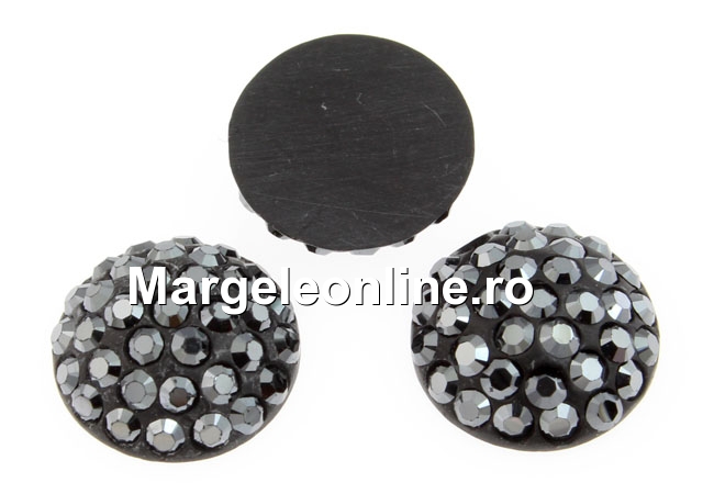 Swarovski, cabochon pave, jet hematite, 6mm - x1