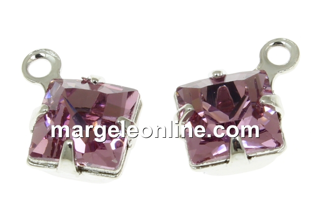Swarovski, charm pl. cu rodiu, square, light amethyst, 11x8mm - x2