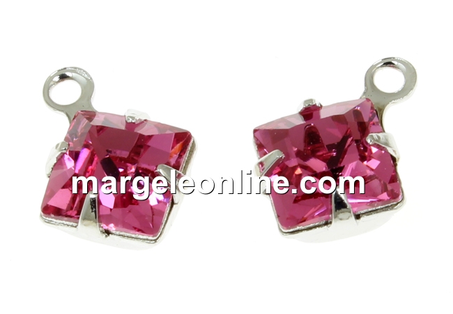 Swarovski, charm pl. cu rodiu, square, rose, 11x8mm - x2