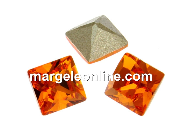 Swarovski, fancy chaton Square, tangerine, 3mm - x10