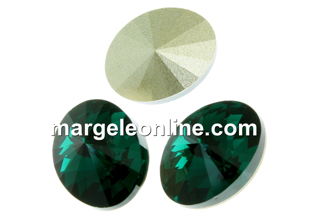 Swarovski, fancy oval, emerald, 14x10.5mm - x2