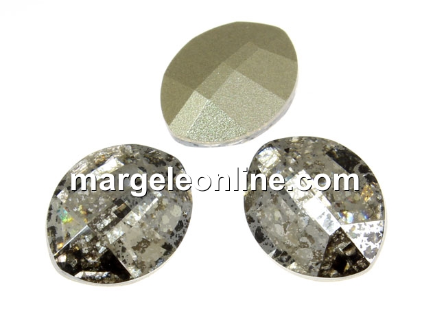 Swarovski, fancy rivoli, pure leaf, silver patina, 14mm - x1
