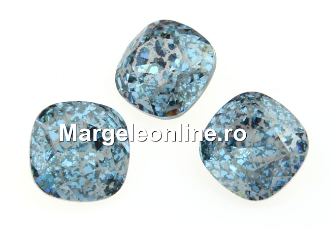 Swarovski, fancy square, aquamarine silver patina, 12mm - x1