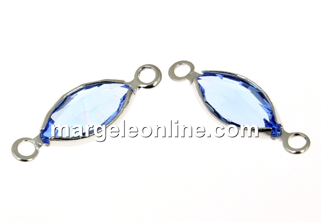 Swarovski, link pl. cu rodiu, navette, lt. sapphire, 16.5mm - x2