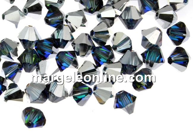 Swarovski, margele bicone, aqua. meridian blue, 6mm - x10