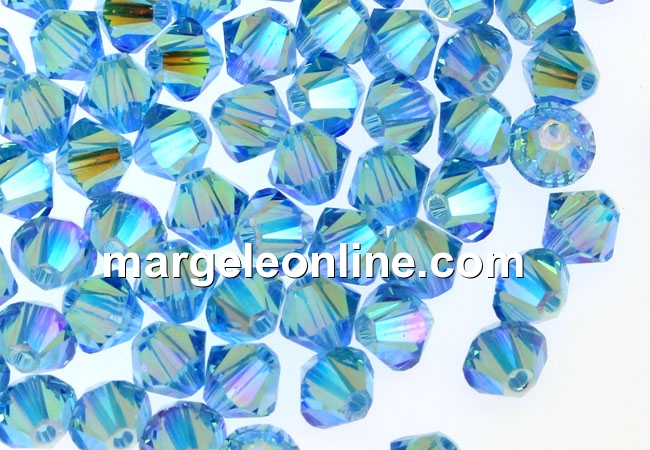 Swarovski, margele bicone, aquamarine AB2x, 4mm - x20