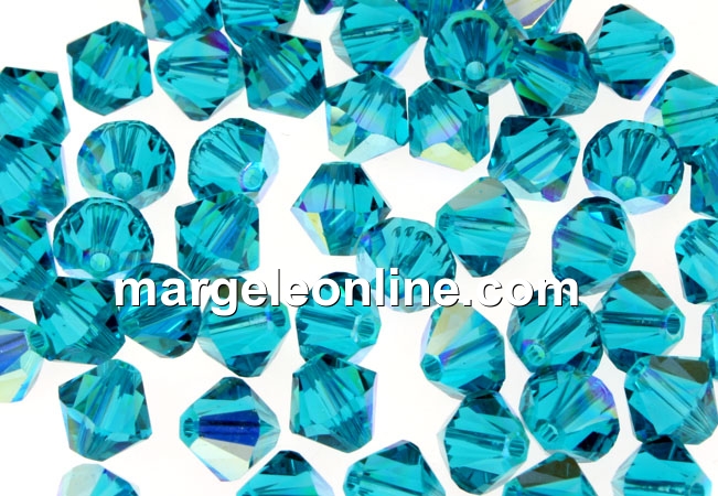 Swarovski, margele bicone, blue zircon AB, 6mm - x10