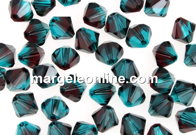 Swarovski Elements 5328, forma: biconic xilion, marime: 4x4mm, culoare: burgundy-blue zircon. Pretul este pentru 20 bucati.