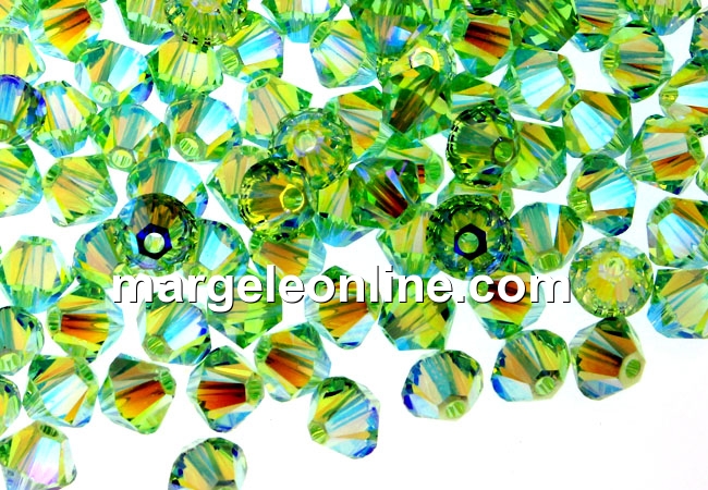 Swarovski, margele bicone, chrysolite AB2x, 4mm - x20