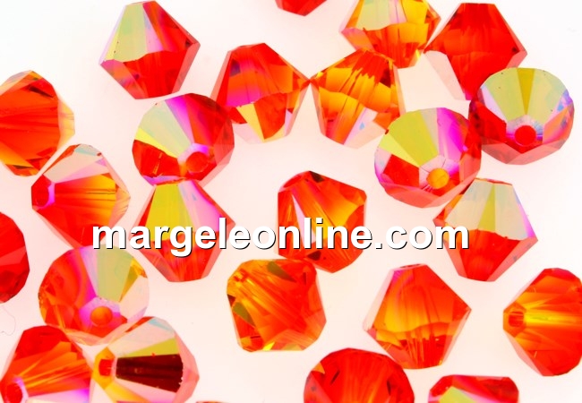 Swarovski Elements, forma: biconic xilion, marime: 4x4mm, culoare: opal de foc aurora boreala, pretul este pentru 20 bucati.