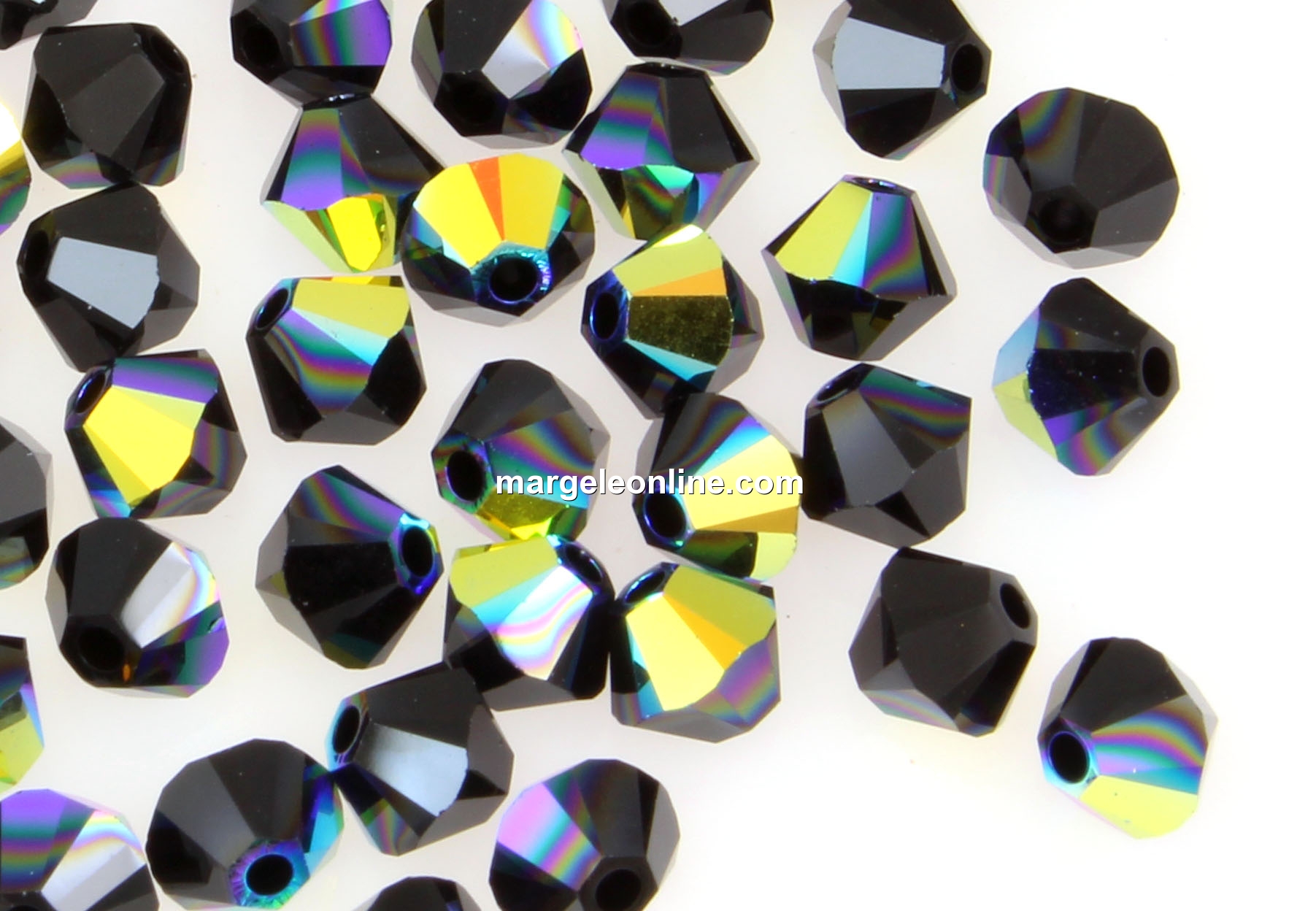 Swarovski, margele bicone, jet AB, 4mm - x20