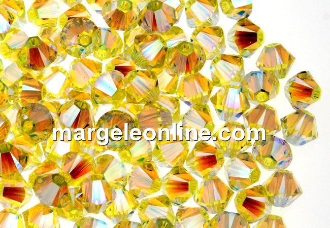 Swarovski, margele bicone, jonquil AB2x, 4mm - x20