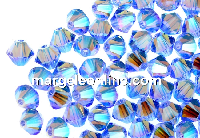 Swarovski, margele bicone, light sapphire AB2x, 4mm - x20