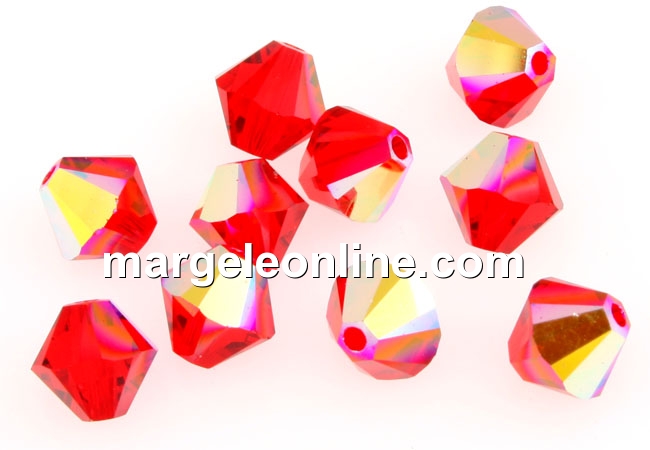 Swarovski, margele bicone, light siam AB, 6mm - x10