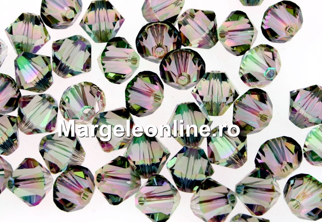 Swarovski Elements, forma: biconic xilion, marime: 4x4mm, culoare: paradise shine, pretul este pentru 20 bucati.