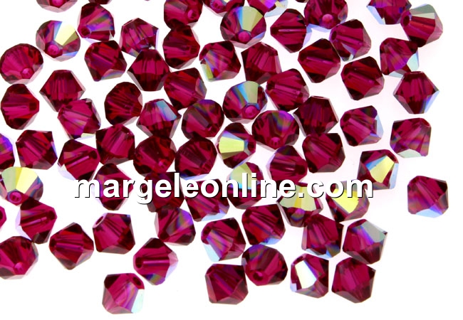 Swarovski Elements, forma: biconic xilion, marime: 6mm, culoare: ruby aurore boreale, pretul este pentru 10 bucati.