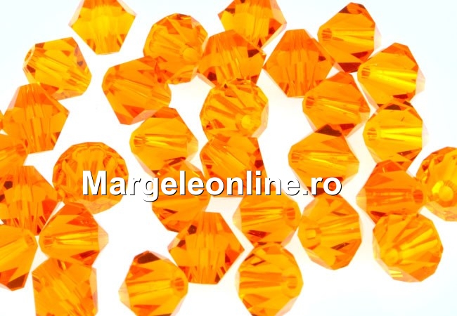 Swarovski Elements, forma: biconic, marime: 4x4mm, culoare: sun. Pretul este pentru 20 bucati.
