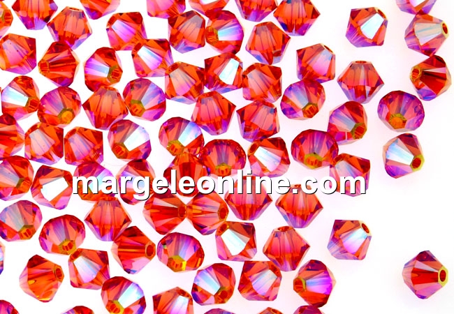 Swarovski, margele bicone, tangerine AB2x, 4mm - x20