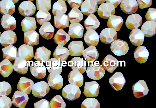 Swarovski, margele bicone, white alabaster AB2x, 4mm - x20