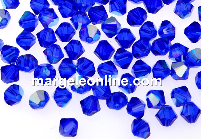 Swarovski, margele bicone xilion, majestic blue AB, 4mm - x20