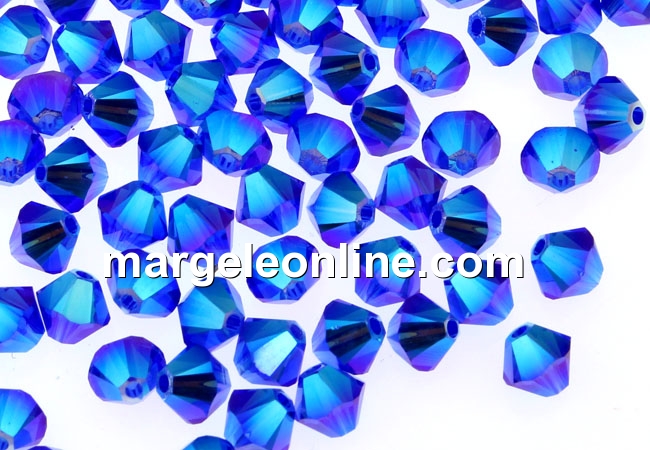 Swarovski, margele bicone xilion, majestic blue AB2X, 4mm - x20