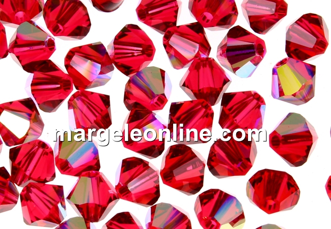 Swarovski, margele bicone xilion, scarlet AB, 4mm - x20
