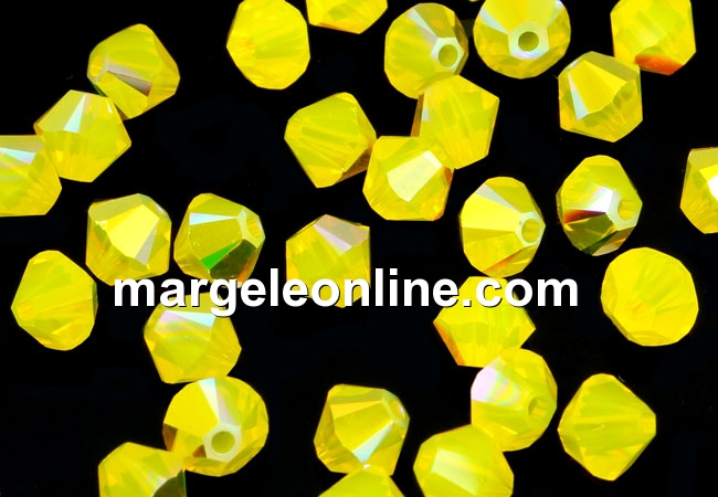 Swarovski, margele bicone xilion, yellow opal AB, 4mm - x20