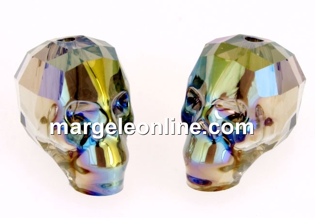 Swarovski, margele craniu, iridescent green, 15x13mm - x1