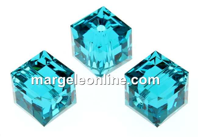 Swarovski, margele cub, blue zircon, 8mm - x1