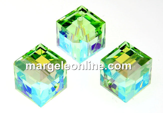 Swarovski, margele cub, chrysolite AB, 8mm - x1