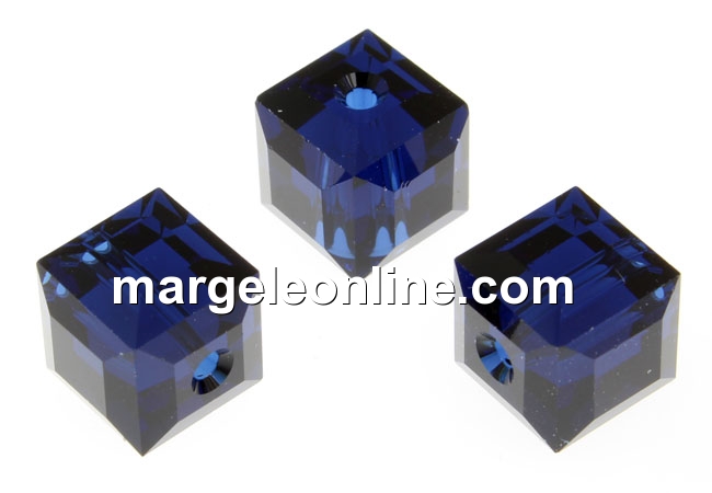 Swarovski, margele cub, dark indigo, 6mm - x2