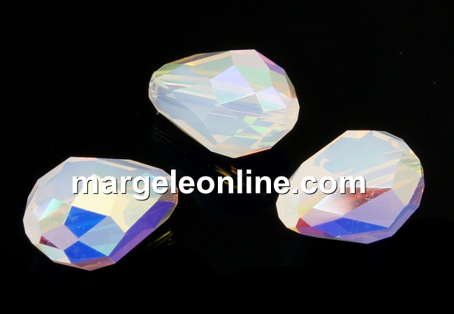 Swarovski, margele picatura, white opal AB, 9x6mm - x2