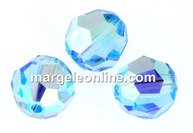 Swarovski, margele, rotund fatetat, aquamarine AB, 8mm - x2