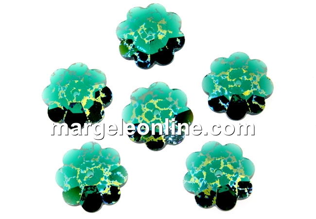 Swarovski Elements, forma: margareta cu 8 petale, marime: 8mm, culoare: verde smarald transparent cu irizatii, pretul este pentru 10 bucati.
