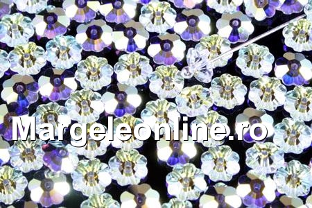 Swarovski Elements, forma: margareta cu 8 petale, marime: 6mm, culoare: transparent cu irizatii curcubeu, pretul este pentru 10 bucati.