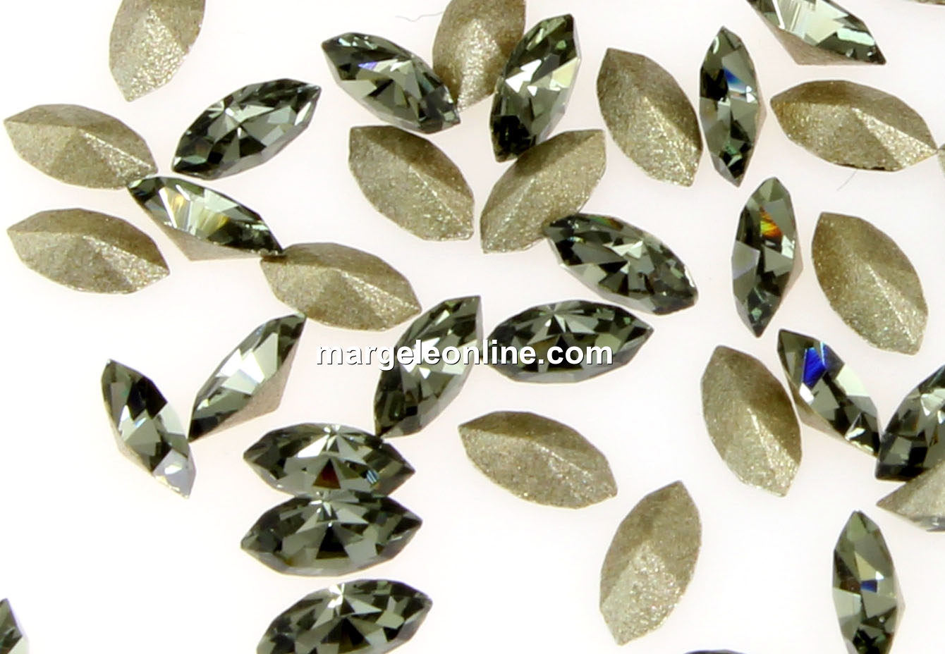 Swarovski navette, fancy chaton , black diamond, 4mm - x10