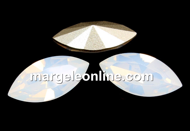 Swarovski navette, fancy chaton, white opal, 15mm - x2