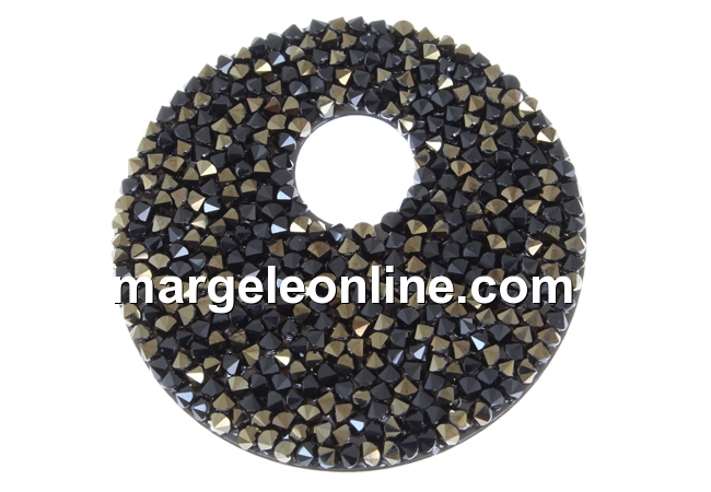 Element Swarovski fine rocks, pandantiv, forma: disc perforat, diametru: 40mm, diametru perforatie: 10mm. Pretul este pentru 1 bucata. Poate fi perforat DOAR din spate spre fata cu un obiect ascutit si rotunjit de 1-1.5mm (gen un ac gros pentru cusut lana) incat cu accesoriile necesare sa transformati produsul in pandantiv sau cercei, baza din silicon fiind foarte elastica. Deci: trecand obiectul ascutit DOAR din spate spre fata si niciodata invers, din fata spre spate.