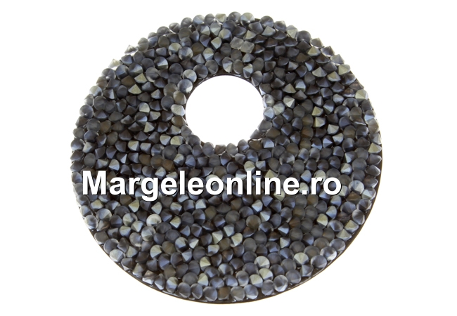 Element Swarovski fine rocks, pandantiv, forma: disc perforat, diametru: 40mm, diametru perforatie: 10mm. Pretul este pentru 1 bucata. Poate fi perforat DOAR din spate spre fata cu un obiect ascutit si rotunjit de 1-1.5mm (gen un ac gros pentru cusut lana) incat cu accesoriile necesare sa transformati produsul in pandantiv sau cercei, baza din silicon fiind foarte elastica. Deci: trecand obiectul ascutit DOAR din spate spre fata si niciodata invers, din fata spre spate.