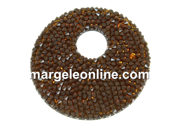 Element Swarovski fine rocks, pandantiv, forma: disc perforat, diametru: 40mm, diametru perforatie: 10mm. Pretul este pentru 1 bucata. Poate fi perforat DOAR din spate spre fata cu un obiect ascutit si rotunjit de 1-1.5mm (gen un ac gros pentru cusut lana) incat cu accesoriile necesare sa transformati produsul in pandantiv sau cercei, baza din silicon fiind foarte elastica. Deci: trecand obiectul ascutit DOAR din spate spre fata si niciodata invers, din fata spre spate.