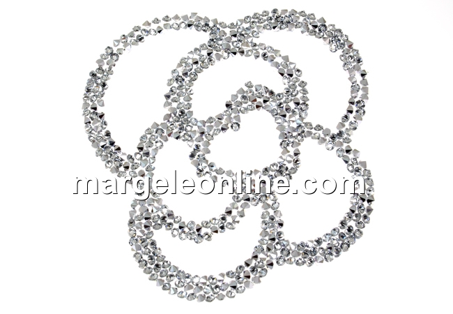 Element Swarovski fine rocks, pandantiv, forma: fancy flower, dimensiune: 66x66mm. Pretul este pentru 1 bucata. Poate fi perforat DOAR din spate spre fata cu un obiect ascutit si rotunjit de 1-1.5mm (gen un ac gros pentru cusut lana) incat cu accesoriile necesare sa transformati produsul in pandantiv sau cercei, baza din silicon fiind foarte elastica. Deci: trecand obiectul ascutit DOAR din spate spre fata si niciodata invers, din fata spre spate.