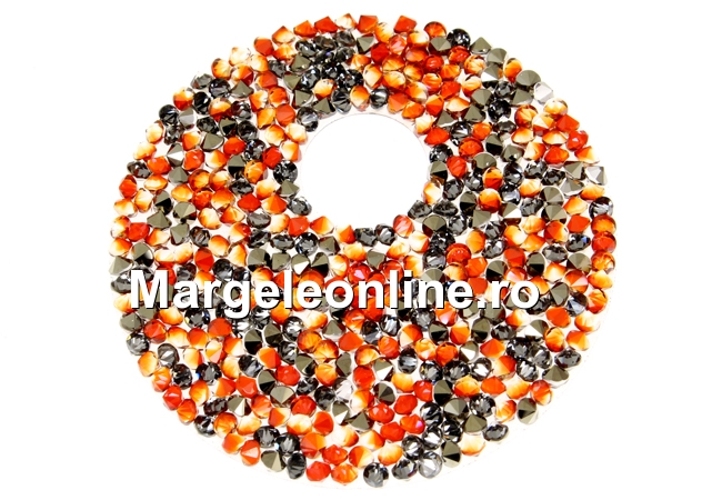 Element Swarovski fine rocks, pandantiv, forma: disc perforat, diametru: 40mm, diametru perforatie: 10mm. Pretul este pentru 1 bucata. Poate fi perforat DOAR din spate spre fata cu un obiect ascutit si rotunjit de 1-1.5mm (gen un ac gros pentru cusut lana) incat cu accesoriile necesare sa transformati produsul in pandantiv sau cercei, baza din silicon fiind foarte elastica. Deci: trecand obiectul ascutit DOAR din spate spre fata si niciodata invers, din fata spre spate.