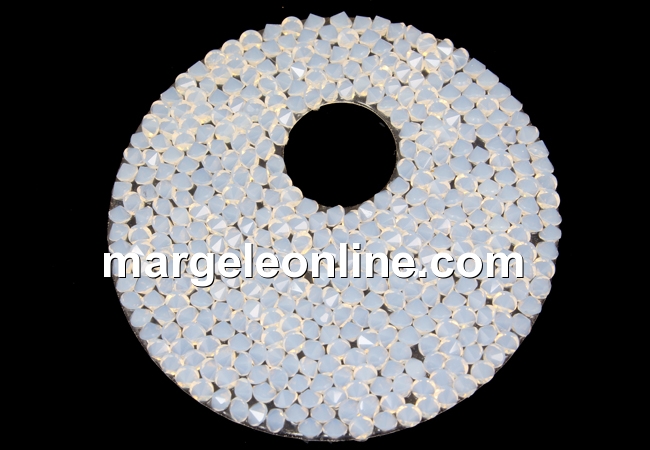 Element Swarovski fine rocks, pandantiv, forma: disc perforat, diametru: 40mm, diametru perforatie: 10mm. Pretul este pentru 1 bucata. Poate fi perforat DOAR din spate spre fata cu un obiect ascutit si rotunjit de 1-1.5mm (gen un ac gros pentru cusut lana) incat cu accesoriile necesare sa transformati produsul in pandantiv sau cercei, baza din silicon fiind foarte elastica. Deci: trecand obiectul ascutit DOAR din spate spre fata si niciodata invers, din fata spre spate.