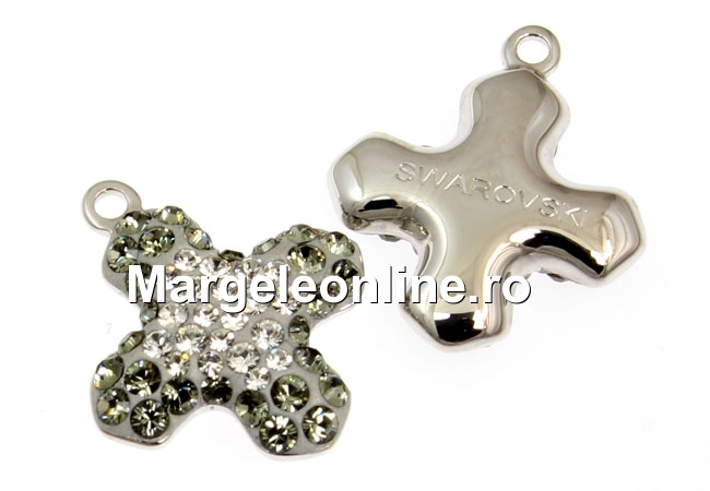 Swarovski, pand. pave placat cu rodiu, cruce, black diamond, 14mm - x1