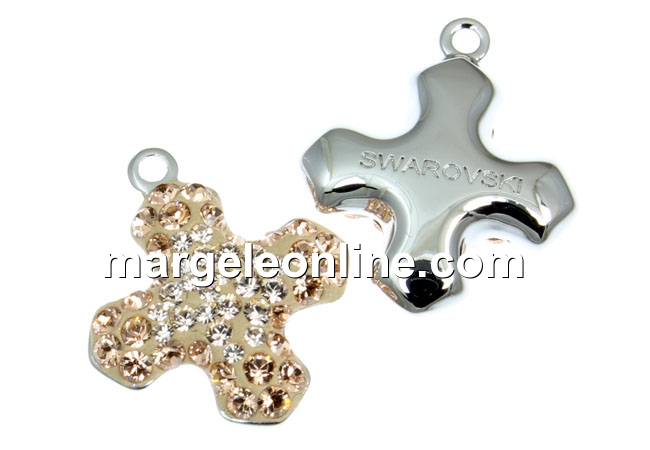Swarovski, pand. pave placat cu rodiu, cruce, light peach, 14mm - x1