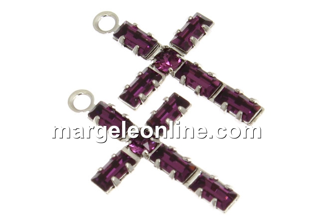 Swarovski, pand. pl. rodiu, cruce, amethyst, 19mm - x1
