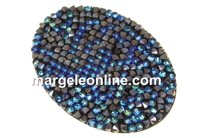 Element Swarovski fine rocks, pandantiv, forma: fancy oval, dimensiune: 50x37mm. Pretul este pentru 1 bucata. Poate fi perforat DOAR din spate spre fata cu un obiect ascutit si rotunjit de 1-1.5mm (gen un ac gros pentru cusut lana) incat cu accesoriile necesare sa transformati produsul in pandantiv sau cercei, baza din silicon fiind foarte elastica. Deci: trecand obiectul ascutit DOAR din spate spre fata si niciodata invers, din fata spre spate.