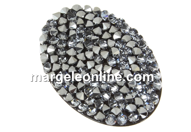 Element Swarovski fine rocks, pandantiv, forma: fancy oval, dimensiune: 37x27mm. Pretul este pentru 1 bucata. Poate fi perforat DOAR din spate spre fata cu un obiect ascutit si rotunjit de 1-1.5mm (gen un ac gros pentru cusut lana) incat cu accesoriile necesare sa transformati produsul in pandantiv sau cercei, baza din silicon fiind foarte elastica. Deci: trecand obiectul ascutit DOAR din spate spre fata si niciodata invers, din fata spre spate.