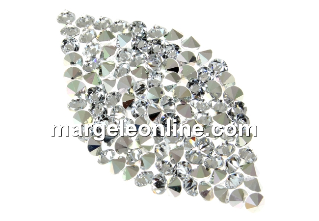 Element Swarovski fine rocks, pandantiv, forma: fancy leaf, dimensiune: 40x23mm. Pretul este pentru 1 bucata. Poate fi perforat DOAR din spate spre fata cu un obiect ascutit si rotunjit de 1-1.5mm (gen un ac gros pentru cusut lana) incat cu accesoriile necesare sa transformati produsul in pandantiv sau cercei, baza din silicon fiind foarte elastica. Deci: trecand obiectul ascutit DOAR din spate spre fata si niciodata invers, din fata spre spate.