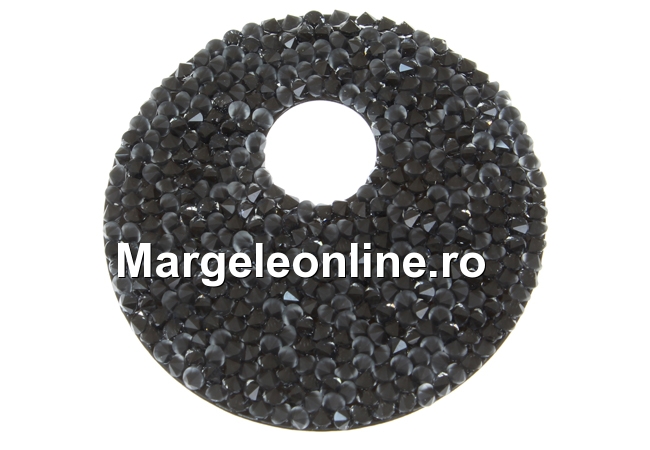 Element Swarovski fine rocks, pandantiv, forma: disc perforat, diametru: 40mm, diametru perforatie: 10mm. Pretul este pentru 1 bucata. Poate fi perforat DOAR din spate spre fata cu un obiect ascutit si rotunjit de 1-1.5mm (gen un ac gros pentru cusut lana) incat cu accesoriile necesare sa transformati produsul in pandantiv sau cercei, baza din silicon fiind foarte elastica. Deci: trecand obiectul ascutit DOAR din spate spre fata si niciodata invers, din fata spre spate.